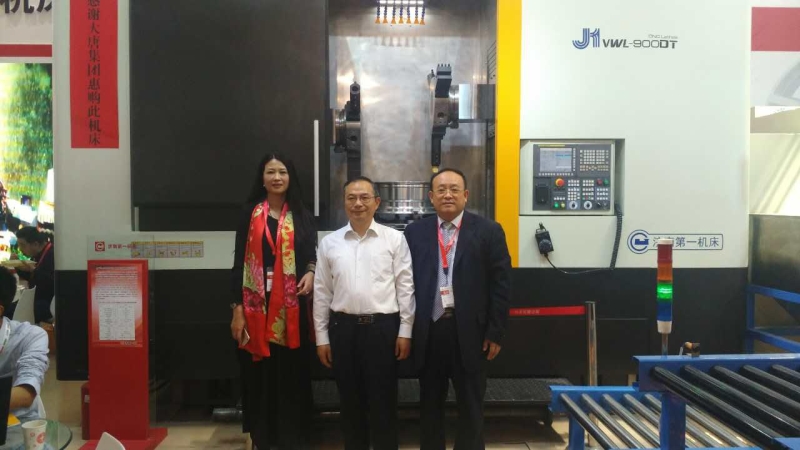 在E1-411展位,济南第一机床有限公司展出了其最新研发、技术赶超国际一流的汽车轮毂加工新开发的J1VWL-900DT双刀架数控立式车床和汽车轮毂加工自动化生产线。