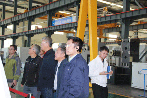 调研组在执行董事王德兴、副总工程师吕守堂陪同下参观了公司生产车间现场。在轮毂加工自动生产线、J1VWL-900/900DT数控立式车床、J1VL-500DT刹车盘自动加工单元、J1MAL-700MC数控多轴车削中心、J1HMC50H精密卧式加工中心、J1VL-600/600ST数控立式车床及刹车盘加工机床、J1KX1015五轴激光加工中心等新产品前,王黎明秘书长、特聘专家姜怀胜等仔细询问、了解产品的性能、市场前景等关心的问题。